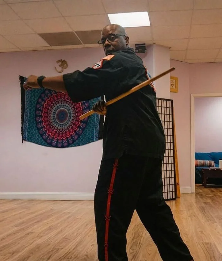 Guru Jule Sims began his martial arts journey at the age of 15, training in JKD, Kali, and Pencak Silat under Sifu Mark Balluff, whose innovative approach ignited a passion for diverse fighting arts. Exploring Tai Mantis with Sifu Mike M. and Hung Gar with Sifu Donald H., he discovered his true calling in Pencak Silat after a powerful demonstration by Honorary Guru Cliff S.